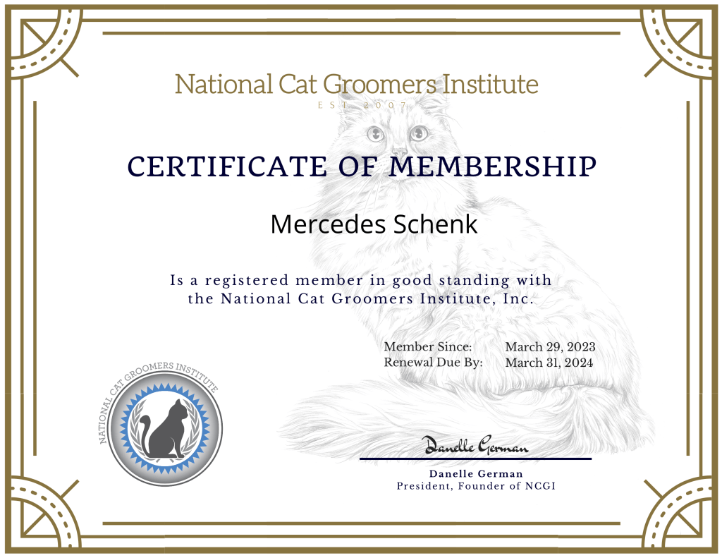 National Cat Grooming Institute Member + Trained