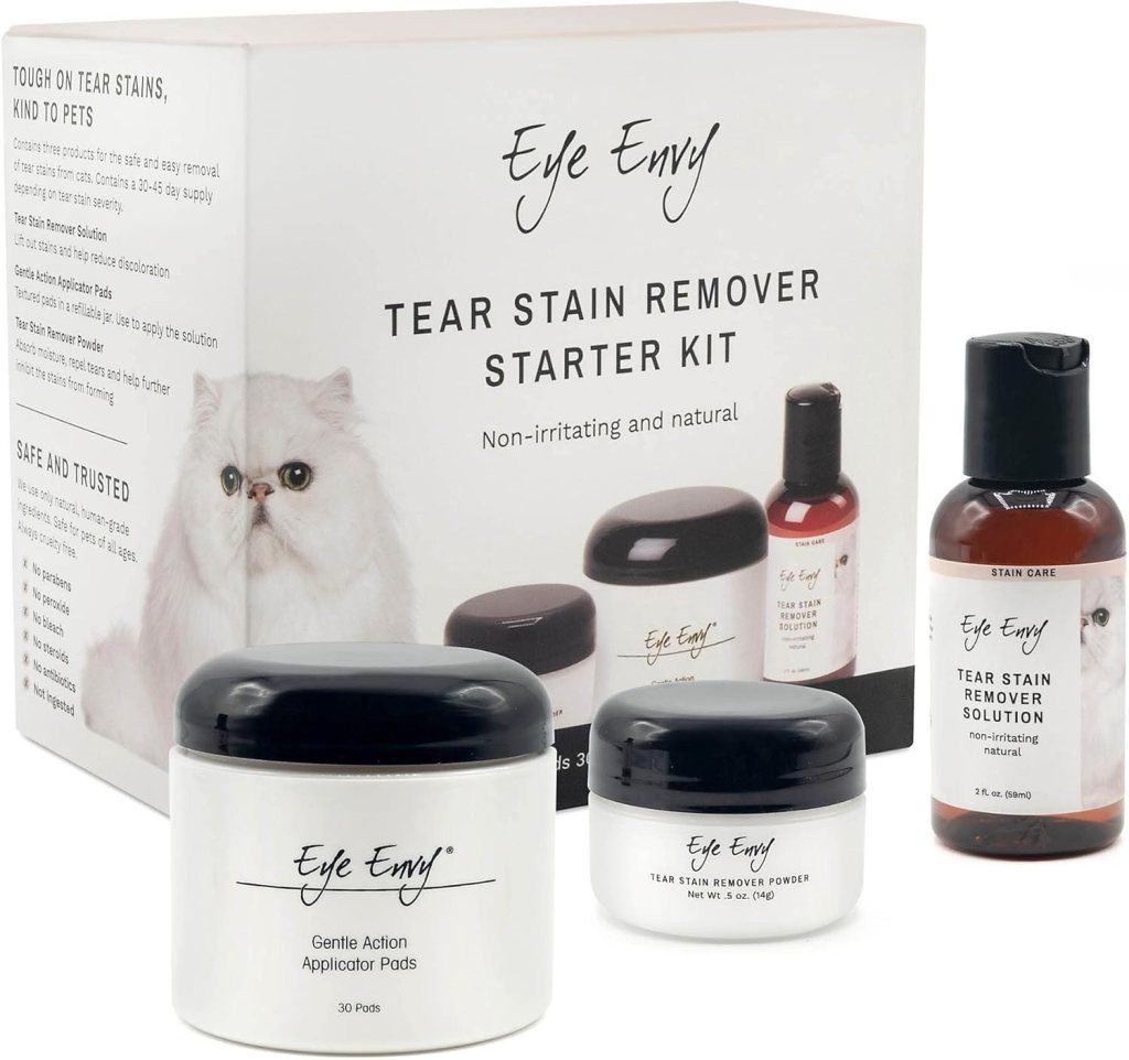 Brachycephalic cats such as Persians require daily facials. Tear gunk build up can cause not just staining but infections. Cats with chronic respiratory infections also require daily facials, so having this kit on hand is really vital. I like to use the applicator pad (comes in solution) if the eyes are very gunky, then dry off with a dry applicator pad. Tear staining is beneficial if you have a cat whose coat is getting stained. Follow instructions as provided.